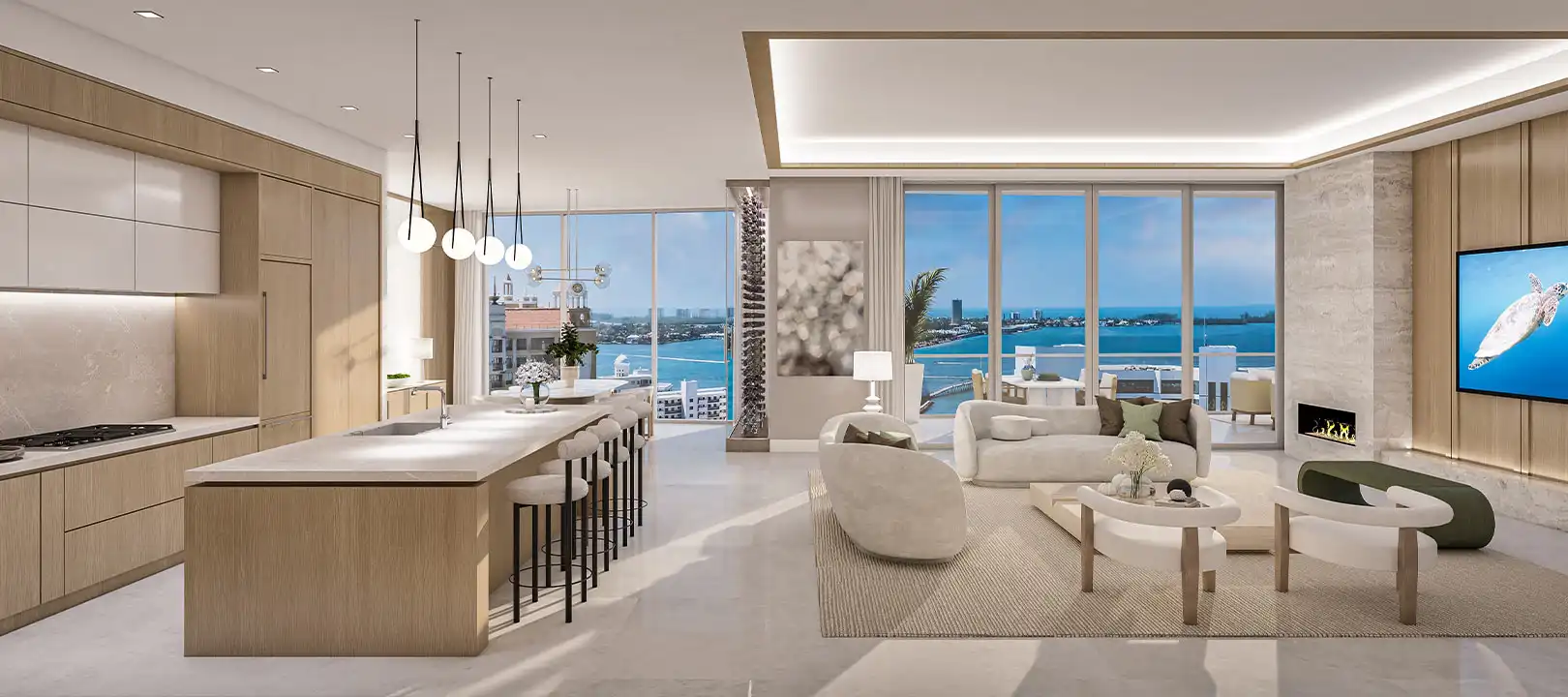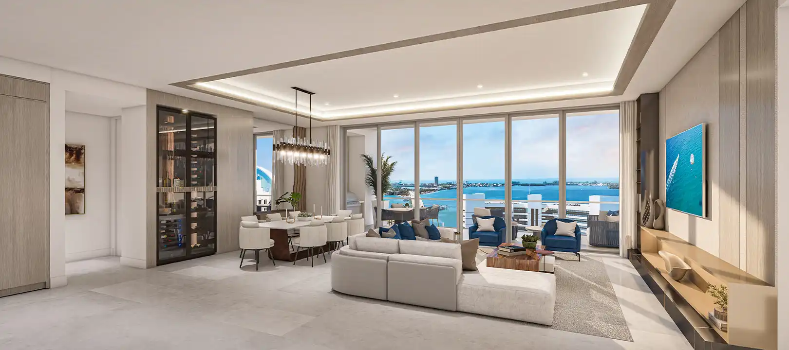 Each elegant residence in the limited collection at The Ritz-Carlton Residences, Sarasota Bay is thoughtfully designed to serve as the ideal stage for the unique lifestyle residents wish to create. Dramatic, large-scale windows envelop residents in luminous panoramic views while bathing interiors in natural light. Spacious, exquisitely finished floor plans open to expansive private terraces that are perfect for morning tea, festive al fresco dining delivered from downstairs, or simply relaxing in the balmy tropical climate.